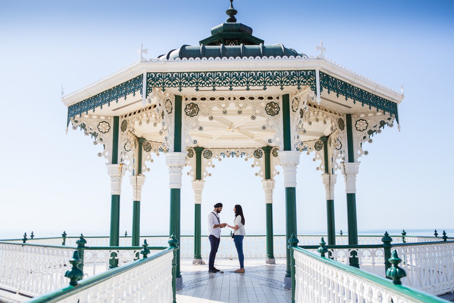 Joginder got in touch to see if I offered engagement photography and was available to photograph his surprise proposal to his partner, Ishar on a beautiful day at the Brighton bandstand. I love the ornate Brighton bandstand. It was first opened in 1884 and was brought back to life in 2009 to celebrate its architectural splendour and offer its beautiful setting for licensed weddings and civil ceremonies.