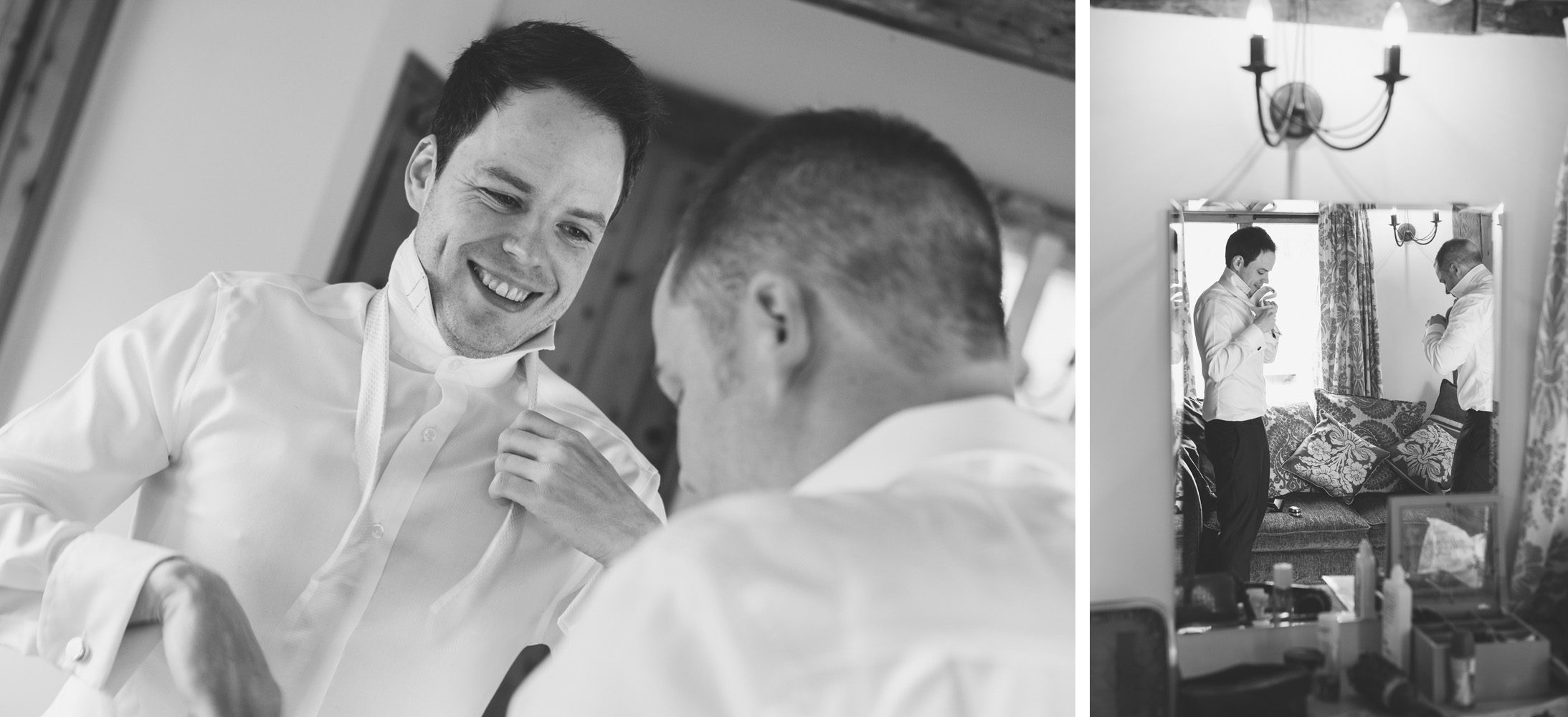 Sam was getting ready with his brother in another cottage just around the corner, so I was able to scoot across the pond to capture some of him getting ready as well. Again, no nerves from Sam. Just a cool and content guy having a laugh with his brother while getting ready to have the day of his life.