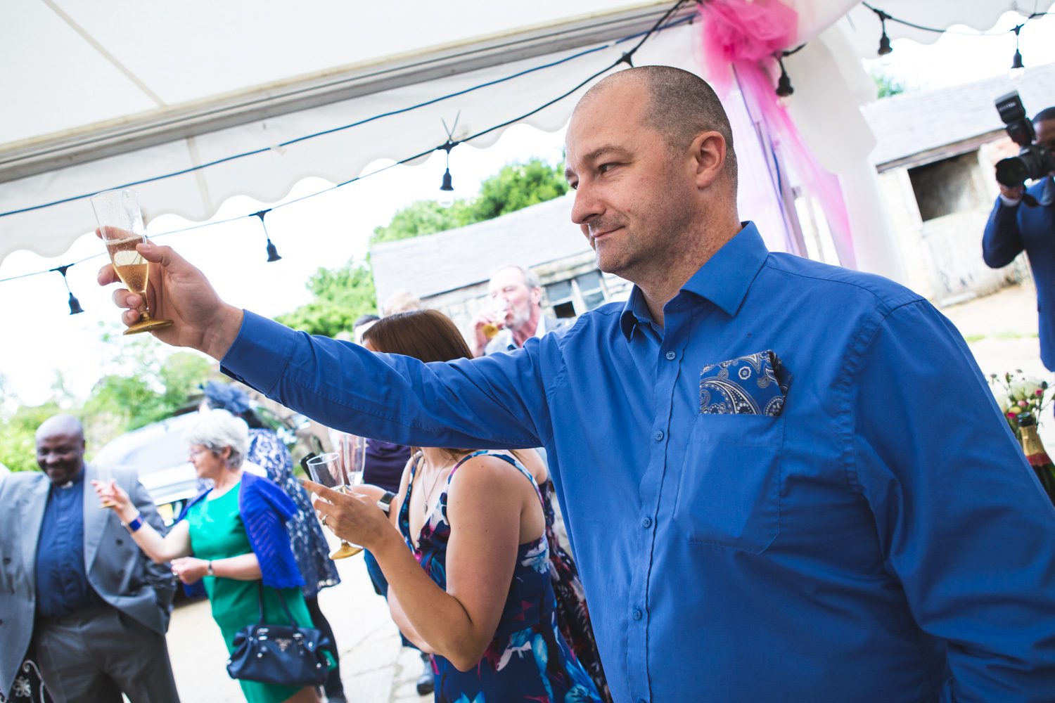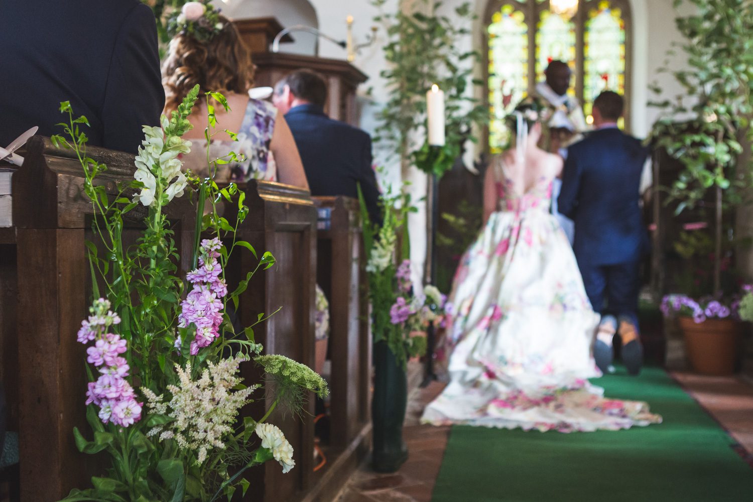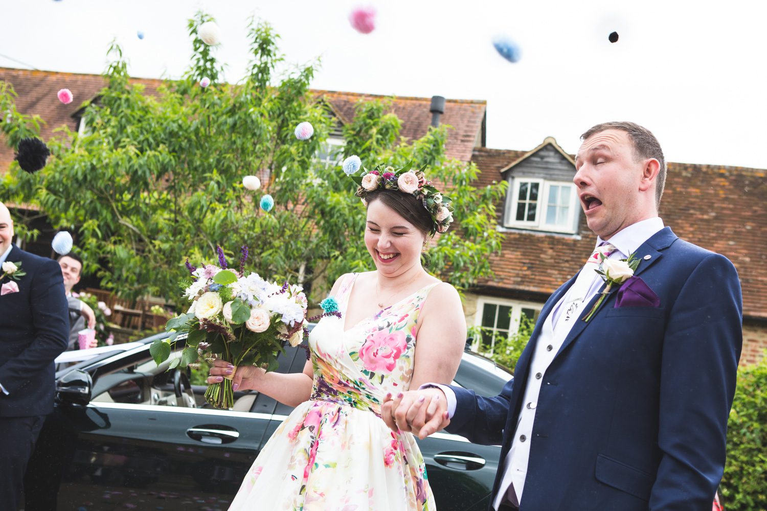 It had it all. Vibrant flowers sprouting from wellie-boots adorning a touching church ceremony; a confetti shower of pom-poms knitted by Fliss herself as they arrived for their reception at Sandy Lane Farm; afternoon tea served in the ancient barn; guests climbing in with the pigs for a cuddle; an ice-cream van; couple portraits on a tractor; rodeo riding, bungee running and a bouncy castle!